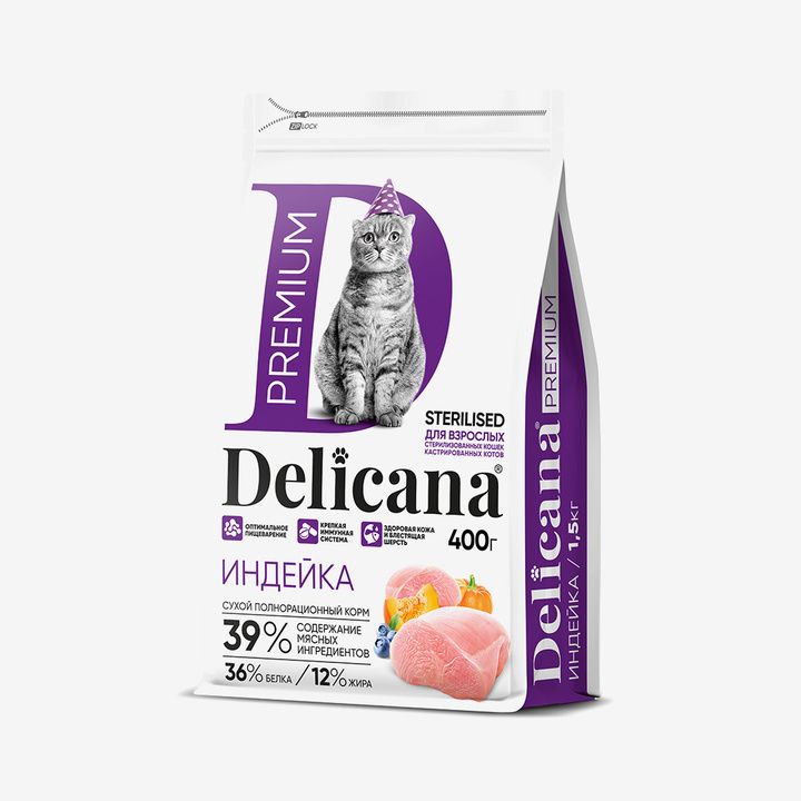 Читать все статьиDELICANA Сух.д/кошек КастСтер Индейка 1,5кг 1/6 3525