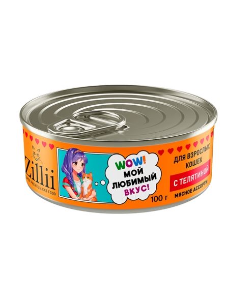 Читать все статьиZILLII Влажные конс. для взрослых кошек 100г с Телятиной 6350
