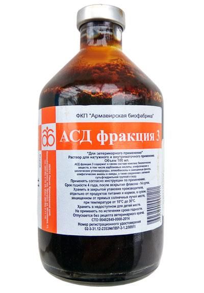 Препарат АСД-З назначают животным наружно в нативном виде или в форме 20-50% масляных растворов. Применяется для лечения инфицированных вяло заживающих ран, дерматитов, хронических воспалительных повреждений кожи и копыт, трофических язв, свищей, копытной гнили овец и некробактериоза у животных, а также гинекологических заболеваний различной этиологии.