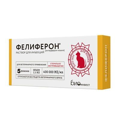 Фелиферон, раствор для инъекций в 1 мл в качестве действующего вещества содержит интерферон кошки с противовирусной активностью 400 000 ME, вспомогательные вещества: уксусная кислота ледяная около 0,0045 мл (до установления pH от 4,5 до 5,0); 1,64 мг натрия ацетат; 5,84 мг натрия хлорид; 0,10 мг полисорбат-20; 0,07 мг натриевая соль этилендиаминтетрауксусной кислоты; 50,00 мг декстран 40 и вода для инъекций до 1 мл.