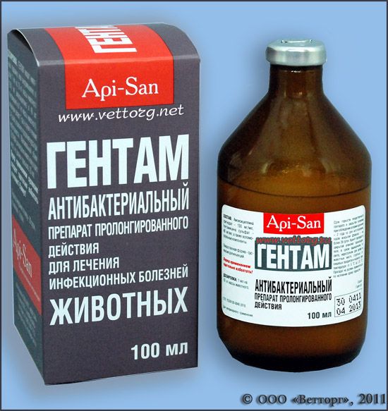 В редких случаях при повышенной индивидуальной чувствительности и нарушении порядка приема и дозирования лекарственного средства возможны аллергические реакции, отказ от корма, рвота, нарушение координации движений, выраженная отечность в месте введения Гентама, диарея, при длительном применении в высоких дозах отмечаются нейротоксические реакции и тромбоцитопения. В этих случаях, внутривенно вводят антихолинэстеразные лекарственные средства, препараты кальция, проводят симптоматическую и десенсибилизирующую терапию, а также дезинтоксикацию организма. На месте инъекции может развиваться незначительный отек, который самопроизвольно рассасывается в течение 1 – 2 суток и не требует лечения.