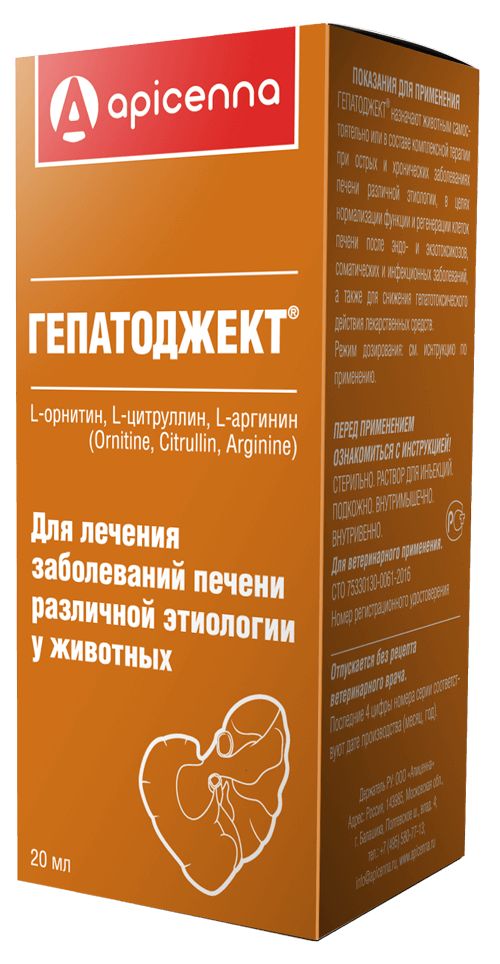Гепатоджект – инъекционный раствор для лечения заболеваний печени различной этиологии у животных, 20 мл