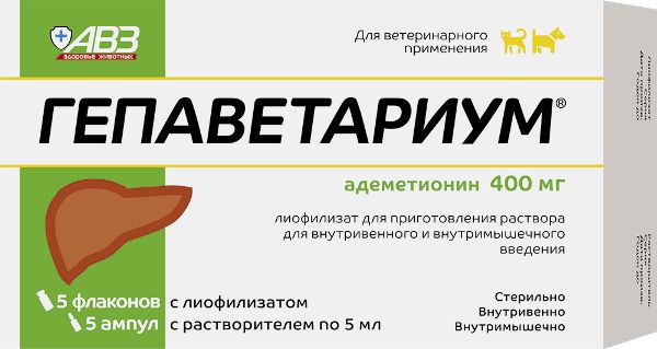 ГЕПАВЕТАРИУМ® вводят внутривенно или внутримышечно 1 раз в сутки в дозе 20 мг/кг по действующему веществу, что соответствует 0,25 мл/ кг массы животного.