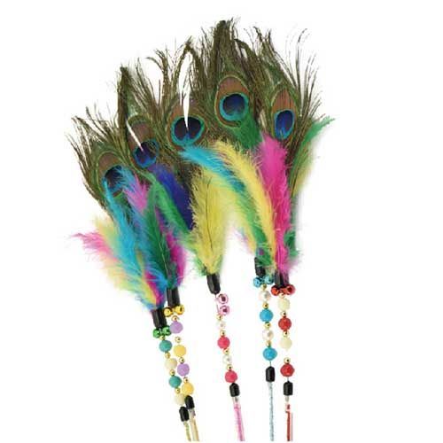 Игрушка д/кошек Дразнилка Павлин с перьями 64см Keiko 8087