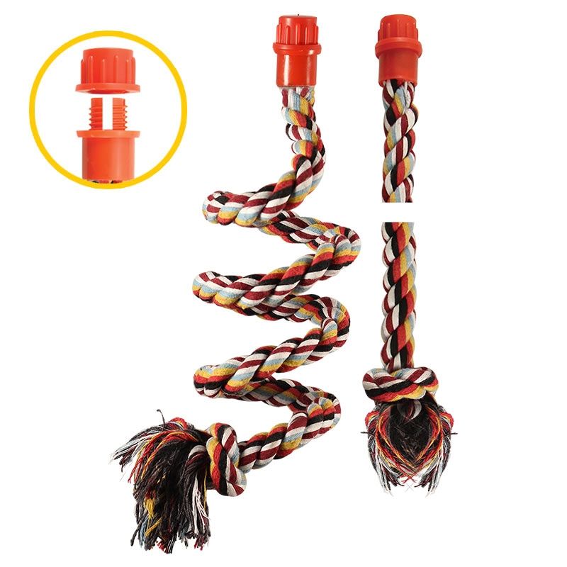 Гибкая жердочка для птиц сделана из разноцветной хлопковой веревки, в центре металлический стержень, который изгибается и принимает любую интересную форму. Длина в спирали 240 мм. Максимальная длина при распрямлении составляет 1450 мм. На одном конце располагается пластиковый закрепитель с резьбой.