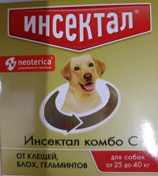Читать все статьиИнсектал Комбо Капли для собак 25-40кг 1/42