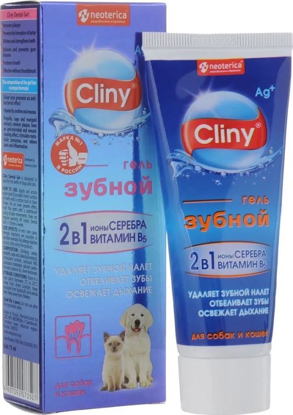 Зубной гель Cliny предназначен для ухода за зубами собак и кошек. Снимает и предотвращает воспаление десен, удаляет налет, задерживает образование зубного камня, освежает дыхание. Безопасен при проглатывании.