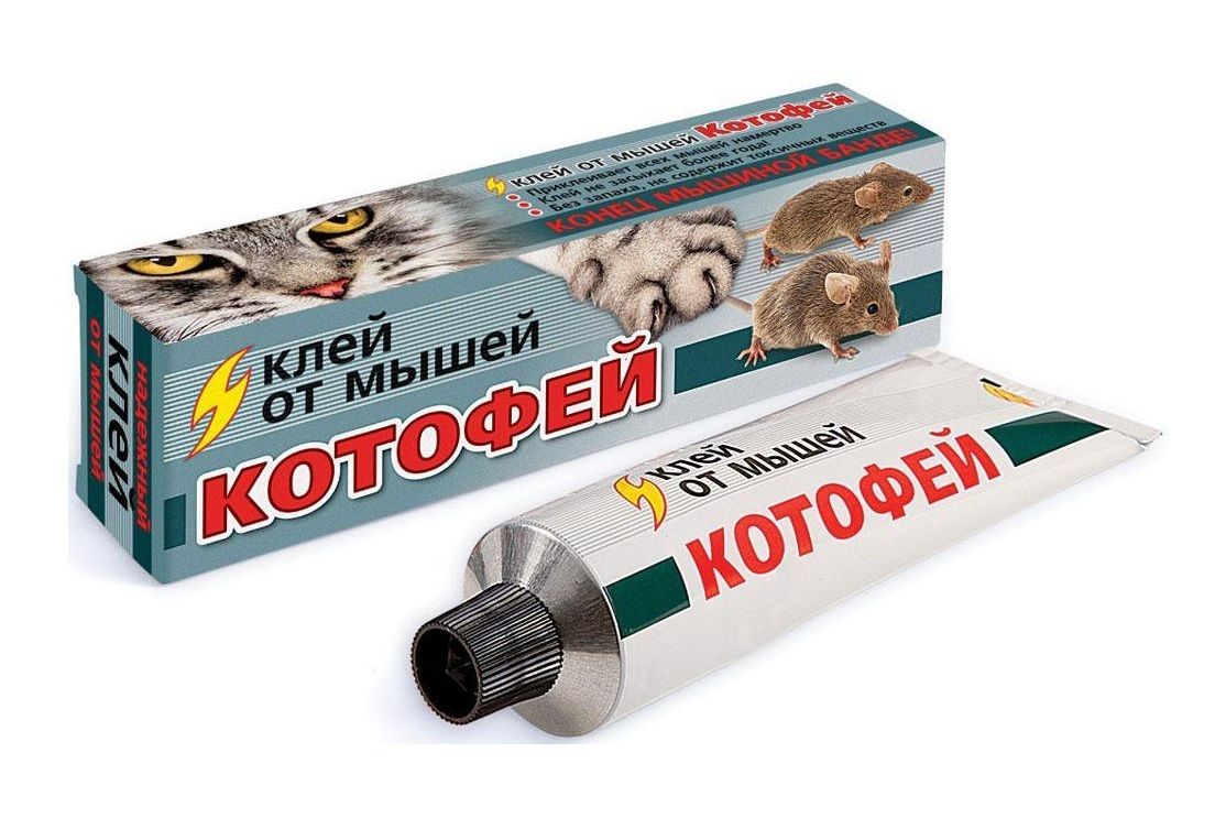 В некоторых случаях применение отравленных приманок или мышеловок невозможно или нежелательно. В этом случае отличные результаты дает применение специального клея. Клей «Котофей» предназначен для отлова мышей и мелких крыс, обладает замечательными клеящими свойствами, надежно фиксирует «влипших» грызунов.