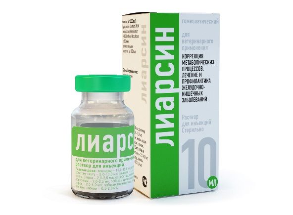 Лиарсин раствор для инъекций вводят животным подкожно, внутримышечно или внутривенно. Разовая доза препарата на одно животное составляет: крупному рогатому скоту — 5 – 10 мл; лошадям — 10 – 15 мл; свиньям — 2,5 – 5 мл; козам, овцам, телятам, жеребятам и поросятам — 2 – 2,5 мл; собакам крупных и средних пород — 2 – 4 мл; собакам мелких пород, щенкам, кошкам и котятам — 0,5 – 2 мл; хорькам и фреткам — 0,5 мл и грызунам по 0,2 – 0,3 мл. Для каждого животного необходимо использовать отдельную стерильную иглу. В тяжелых случаях болезни Лиарсин раствор для инъекций применяют 1 – 2 раза в сутки до исчезновения клинических признаков заболевания, при хроническом течении болезни — 2 – 3 раза в неделю. Длительность курса лечения при острых заболеваниях составляет 10 – 14 дней, при хронических — 3 – 4 недели. При необходимости курс повторяют. Применение Лиарсина не исключает использования других лекарственных средств этиотропной, патогенетической и симптоматической терапии.