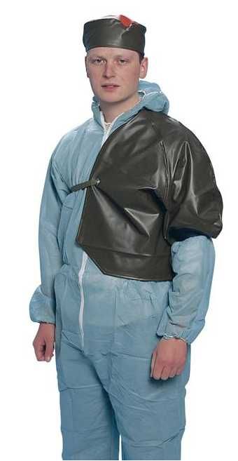 Акушерский наплечник изготовлен из резины с пропаянными швами. Комфортная работа с использованием наплечника, обусловлена его легкостью и статичным положением на плече, благодаря наличию ремешка вокруг туловища ветеринара. Наплечника имеет очень высокую степень сопротивления к промоканию благодаря материалу - полиамиду.