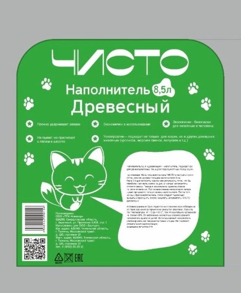 Наполнитель ЧИСТО д/кошек ДРЕВЕСНЫЙ ВПИТЫВАЮЩИЙ зеленый 8,5л/4кг