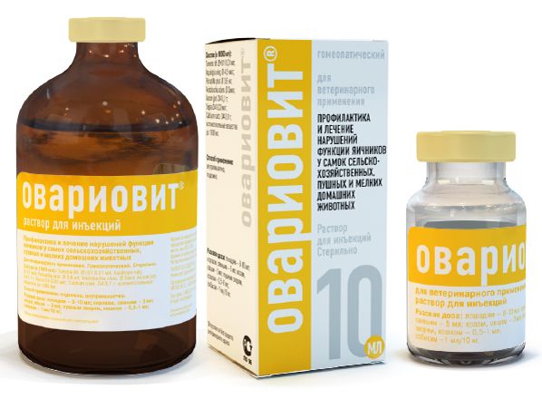 Овариовит оказывает регулирующее действие при нарушении функции яичников у самок: гипофункция яичников, фолликулярные кисты яичников, персистентное желтое тело. По степени токсического воздействия на организм теплокровных животных препарат относится к малоопасным веществам, не обладает местнораздражающим и сенсибилизирующим действием. Гомеопатические компоненты, входящие в состав Овариовита в сверхмалых дозах, не накапливаются в организме животного.