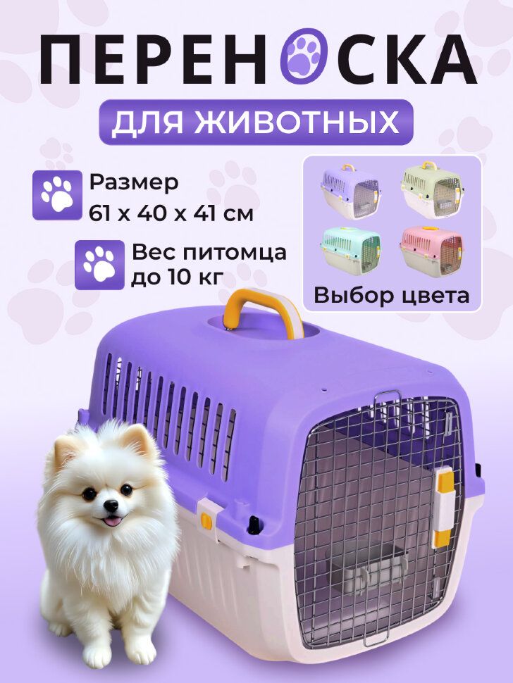 Переноска пластиковая Petmode Macaron 61х40х41 см, фиолетовая