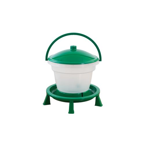Круглый поддон с устойчивыми ножками. Полукруглая ручка бака для воды, предназначена для переноса поилки или ее подвешивания.