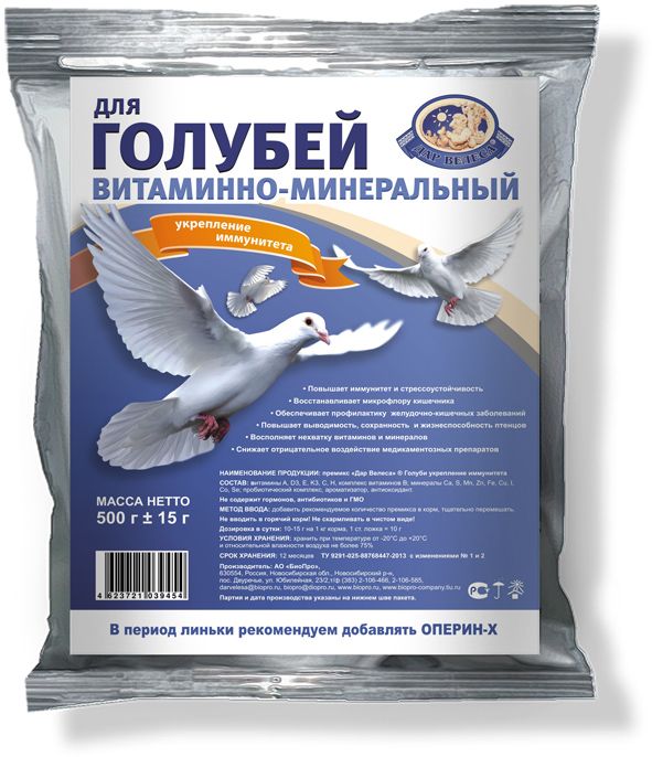 Читать все статьиПремикс Дар Велеса Голуби укрепление иммунитета 1/12 0,5 кг