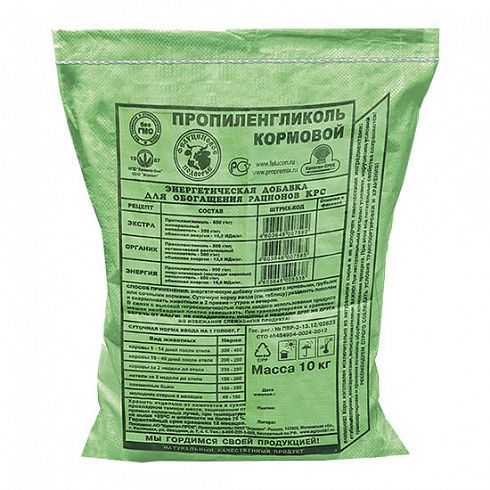 Пропиленгликоль не является самостоятельным кормом, это добавка к основному рациону. Не использовать для других видов животных.