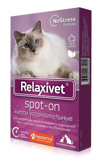 Релаксивет спот-он успокоительный предназначен для коррекции нежелательного поведения при стрессах, страхах и возбуждении у кошек и собак.