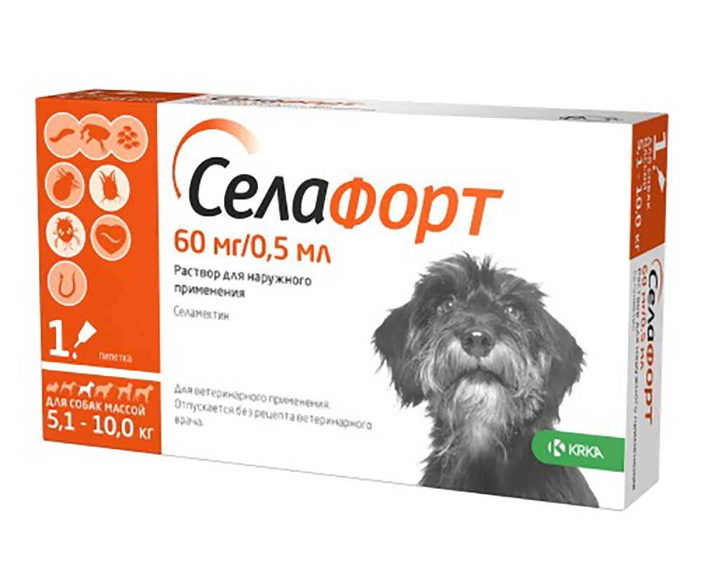 Читать все статьиСелафорт для собак 5,1-10кг 1*60мг/0,5мл КРКА