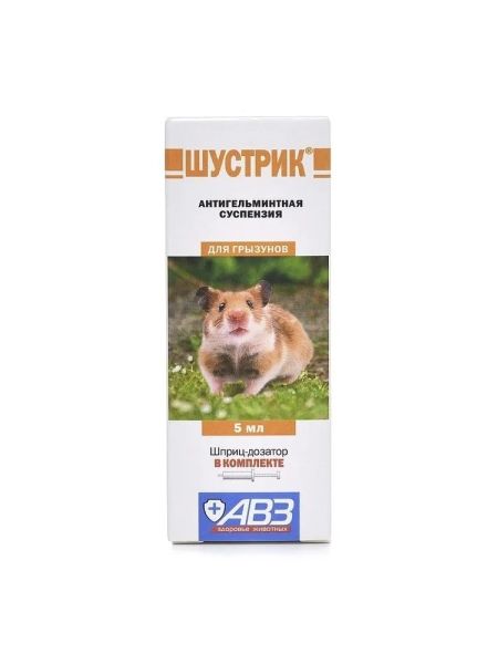 Шустрик суспензия обладает широким спектром антигельминтного действия на все стадии развития нематод и цестод, в том числе Syphacia obvelata, Aspicularis tetraptera, Nippostrongylus muris, Nippostrongylus brasiliensis, Paraspidodera uncinata, Heterakis spumosa, Trichocephalus muris, Trichocephalus sylvilagi, Trichostrongylus retortaeformis, Strongyloides spp., Passalurus ambiguus, Hymenolepis diminuta, Hymenolepis nana, паразитирующих у грызунов. Механизм действия фенбендазола, входящего в состав препарата, заключается в нарушении энергетических процессов и подавлении полимеризации тубулина микроканальцев в клетках кишечника нематод, что приводит к гибели паразита. Празиквантел повышает проницаемость клеточных мембран цестод для ионов кальция, вызывая спастическое сокращение мускулатуры паразита, переходящее в паралич. Шустрик суспензия по степени воздействия на организм теплокровных животных относится к малоопасным веществам.