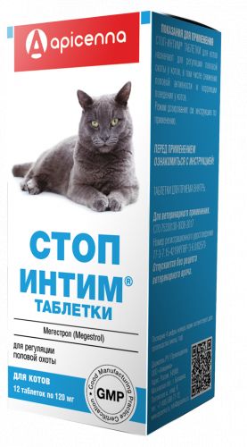 Стоп-Интим таблетки назначают для снижения половой активности и коррекция поведения у котов и кобелей.