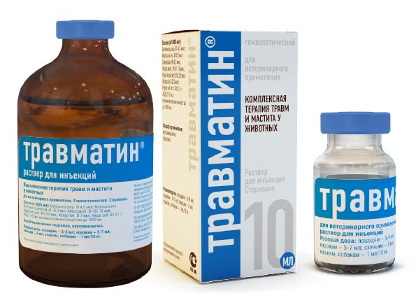 Травматин назначают собакам, кошкам и сельскохозяйственным животным в комплексной терапии травматических повреждений, в том числе при родовых травмах, а также при лечении случайных и операционных ран.