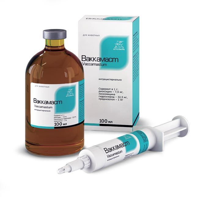 Комплексный противомикробный препарат Ваккамаст в 1 мл в качестве действующих веществ содержит 32,5 мг линкомицина гидрохлорида, 1 мг преднизолона, 7,5 мг диоксидина, а также вспомогательные компоненты: моноглицериды, эмульгатор и вазелиновое масло. По внешнему виду представляет собой маслянистую суспензию светло-желтого цвета для внутривыменного введения. Препарат расфасовывают в полимерных шприцах по 10 мл, упакованных по 20 штук в картонных коробках.