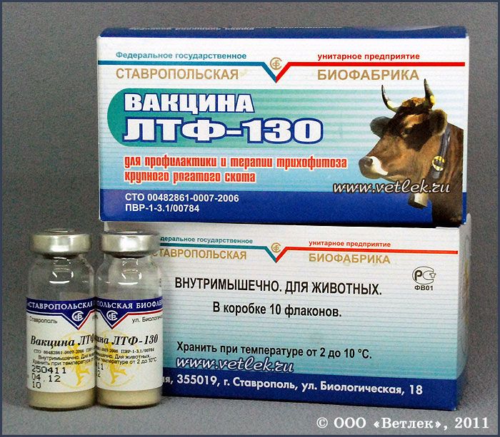 Вакцину ЛТФ-130 применяют для профилактики и терапии трихофитоза крупного рогатого скота.