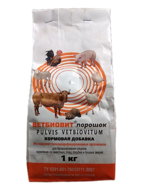 Ветбиовит - комплексная белково-витаминно-минеральная кормовая добавка для с/х животных, птицы и пушных зверей.