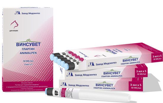 ВИНСУВЕТ Гларгин ANIMALPEN применяют кошкам для лечения сахарного диабета, требующего инсулинотерапии.
