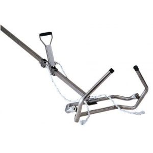 Вспомогатель родов выполнен из нержавеющей стали Благодаря поворотной скобе, опорная насадка гибко подгоняется к животному.
